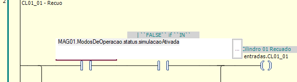 O próximo passo é preparar o meu ambiente para testes, nesse caso vou ter que criar algumas lógicas para simular, em especial os sensores, no caso irei controlar o estado lógico do sensor conforme a saída de avanço e recuo, onde os sensores serão acionados após um determinado tempo, assim simulando o movimento de um cilindro (logicamente esse tempo será menor que o preset de falha).